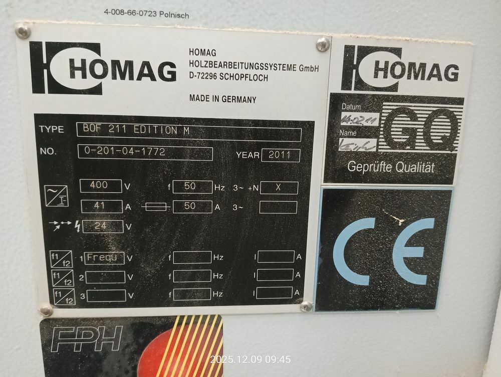 CNC Homag BOF 211 EDITION MRok produkcji: 2011